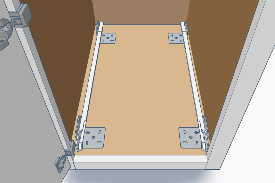 Select the Shelf Depth that would fit inside of your available cabinet interior depth, behind any doors or framing. This is the actual length of the pullout shelf. The Rear Socket Mounting Style